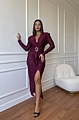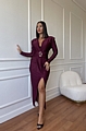 Φόρεμα Μακρυμάνικο Κρουαζέ Με Χρυσή Λεπτομέρεια - Μπορντό