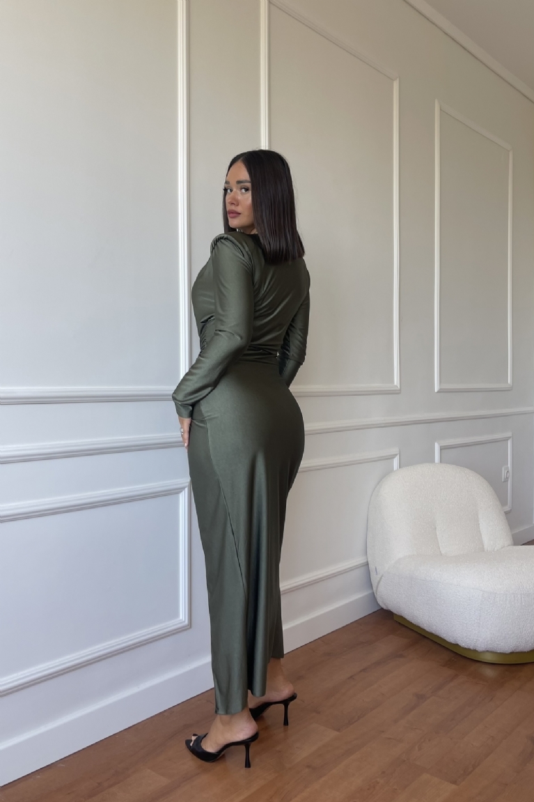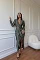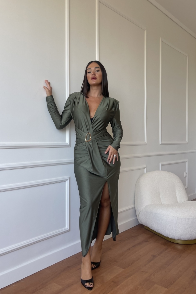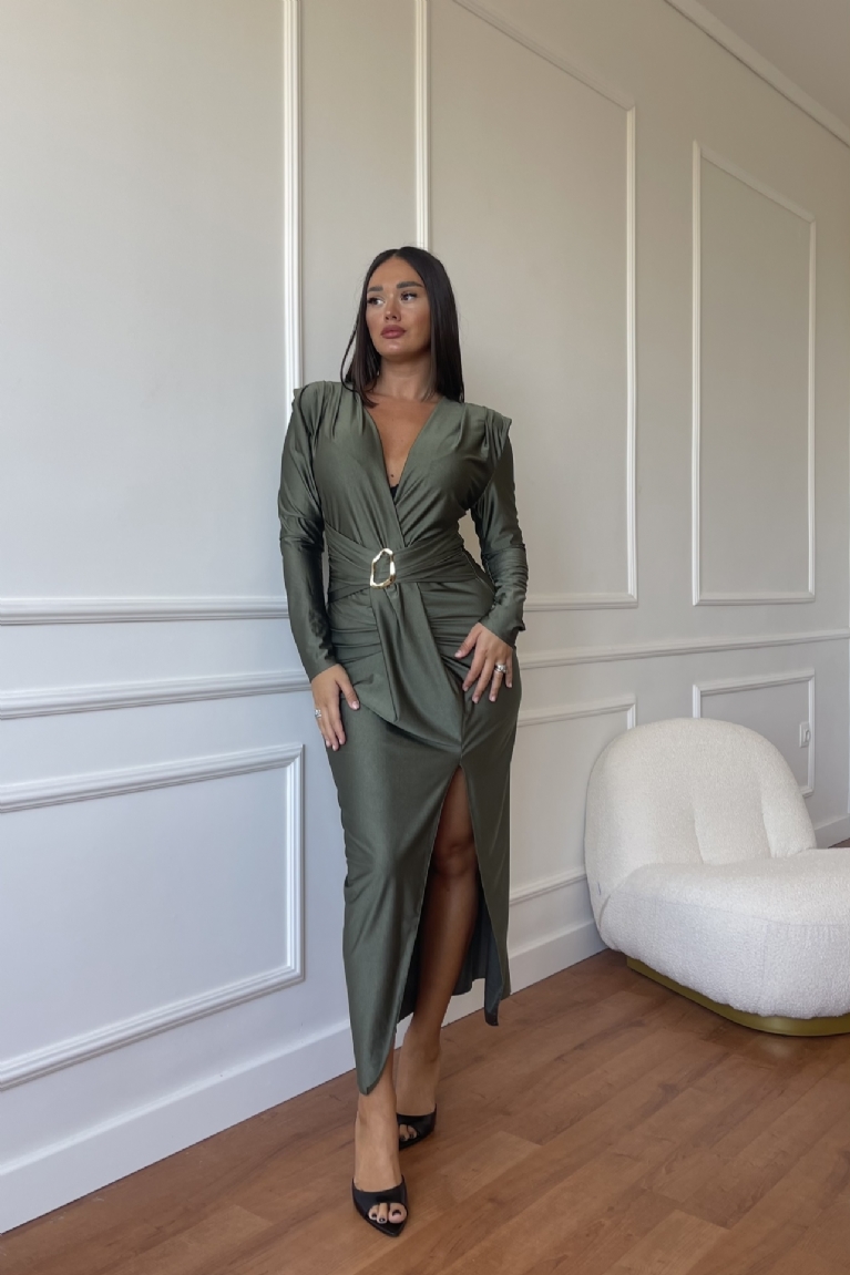 Φόρεμα Μακρυμάνικο Κρουαζέ Με Χρυσή Λεπτομέρεια - Χακί