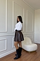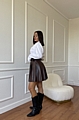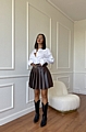 Φούστα Δερμάτινη Με Πιέτες & Ζώνη - Καφέ
