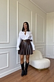 Αναδείξτε το μοναδικό σας στυλ με τη φούστα δερμάτινη με πιέτες & ζώνη σε κομψό καφέ χρώμα.