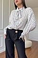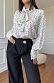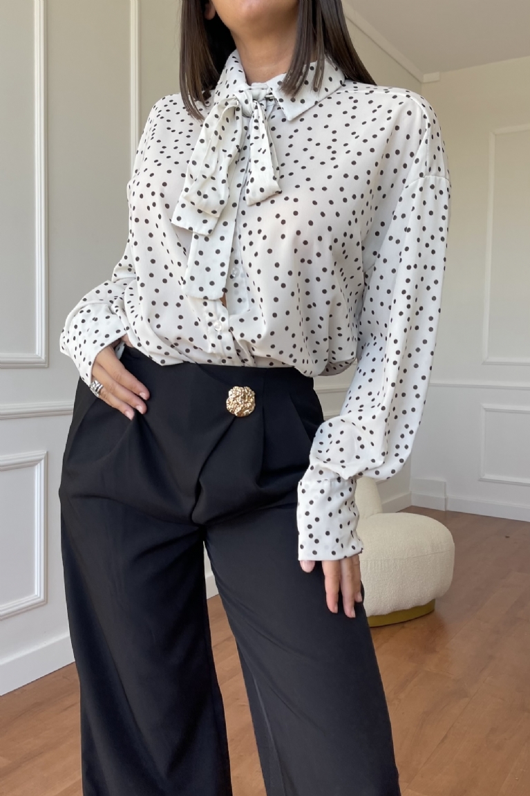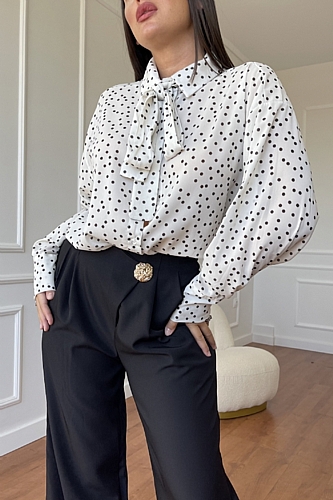 Αναδείξτε τη θηλυκότητά σας με το λευκό πουκάμισο πουά με δέσιμο στον λαιμό.
