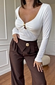 Αναδείξτε το στυλ σας με τη λευκή μακρυμάνικη μπλούζα με άνοιγμα και χρυσή λεπτομέρεια, που μαγνητίζει τα βλέμματα.