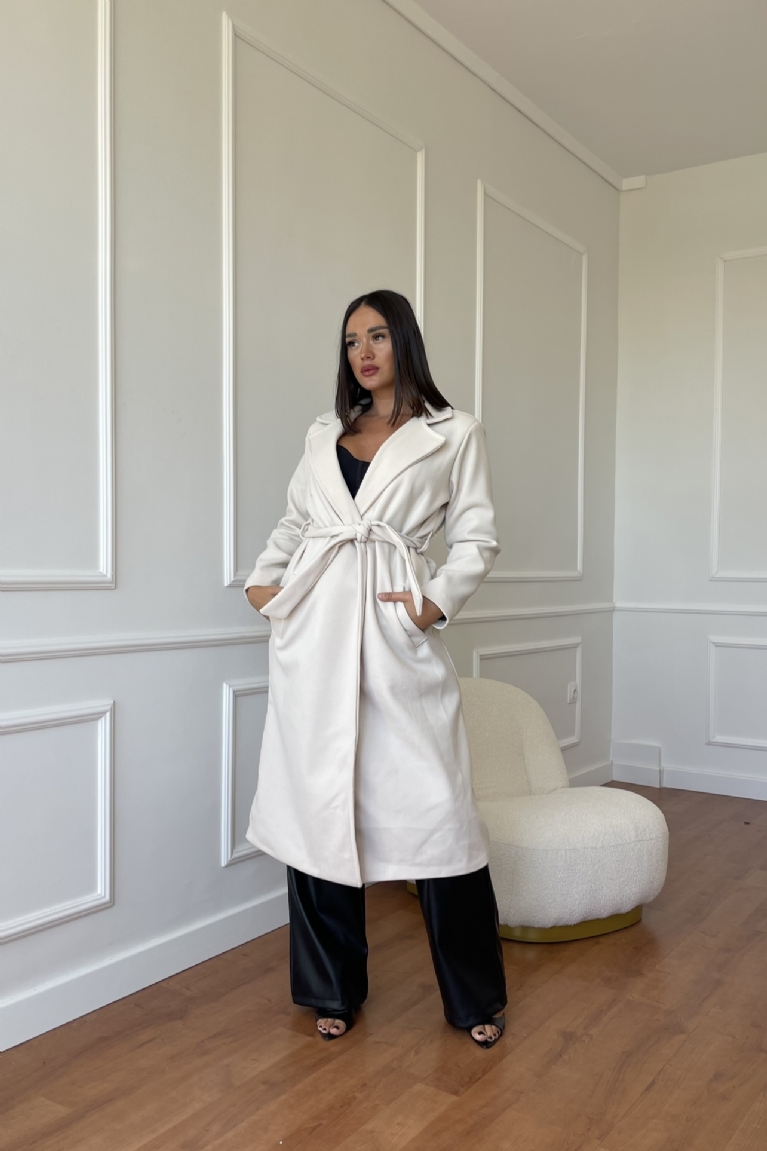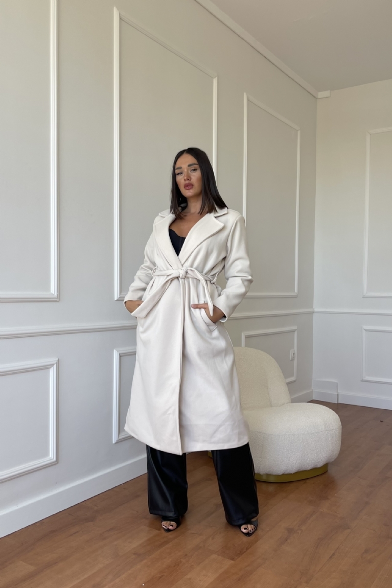 Καμπαρντίνα Με Κουμπιά & Ζώνη - Εκρού