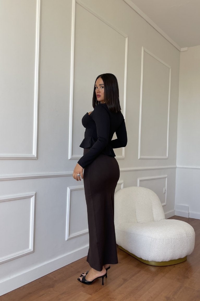 Φούστα Midi Ψηλόμεση Με Σκίσιμο - Καφέ