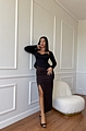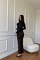 Η εφαρμογή της αγκαλιάζει μοναδικά τη σιλουέτα, ενώ το εντυπωσιακό σκίσιμο προσδίδει δυναμισμό και διαχρονικό χαρακτήρα.