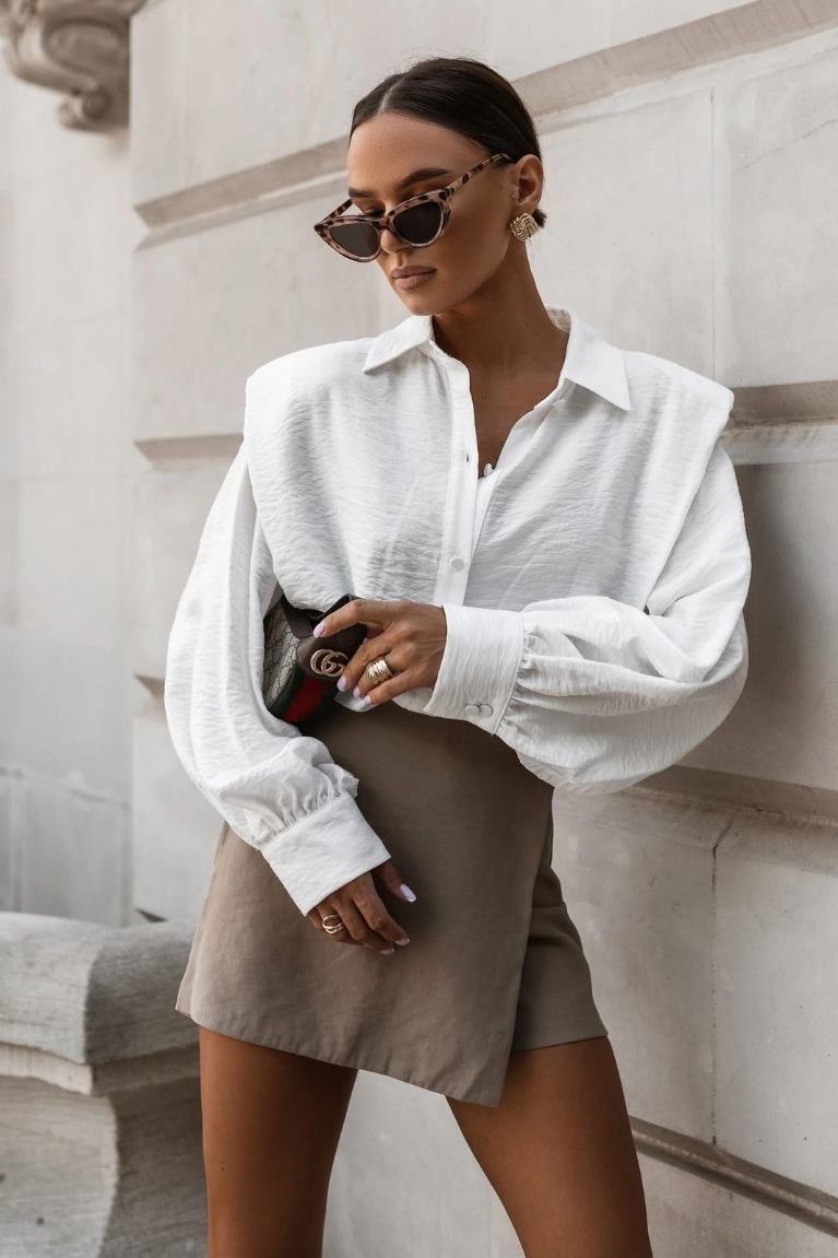 Αναδείξτε το στυλ σας με το λευκό πουκάμισο με βάτες στους ώμους, που χαρίζει μια δυναμική και μοντέρνα εμφάνιση σε κάθε σας σύνολο.