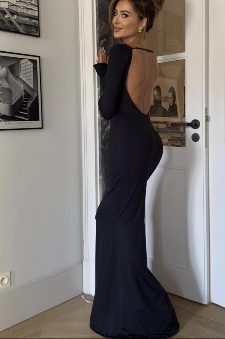 Αναδείξτε τη θηλυκότητά σας με το maxi μακρυμάνικο εξώπλατο φόρεμα σε μαύρο χρώμα.