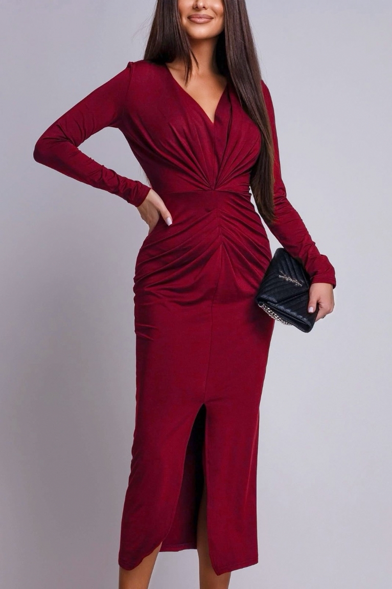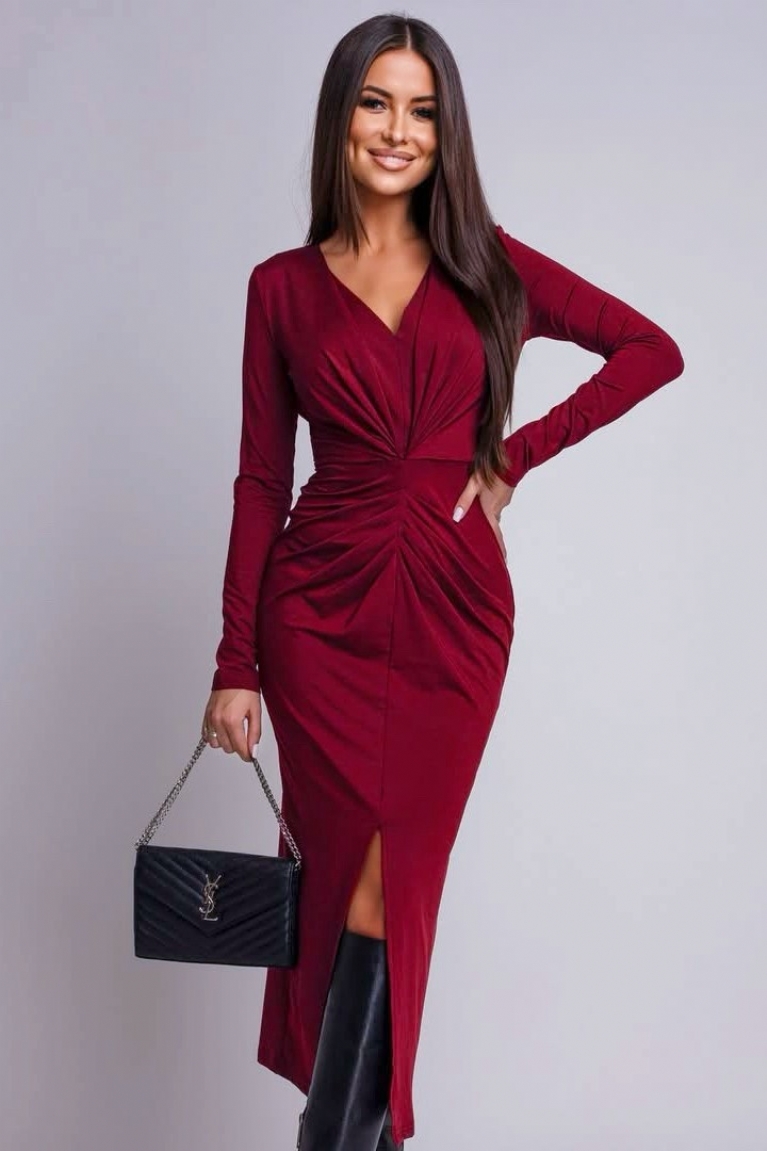 Αναδείξτε τη θηλυκότητά σας με αυτό το μακρυμάνικο φόρεμα σε εντυπωσιακό μπορντό χρώμα.