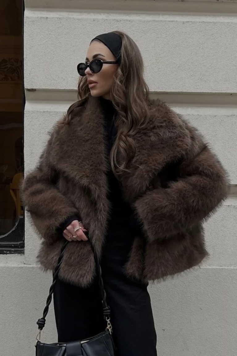 Γούνα Κοντή Με Μεγάλο Γιακά - Καφέ