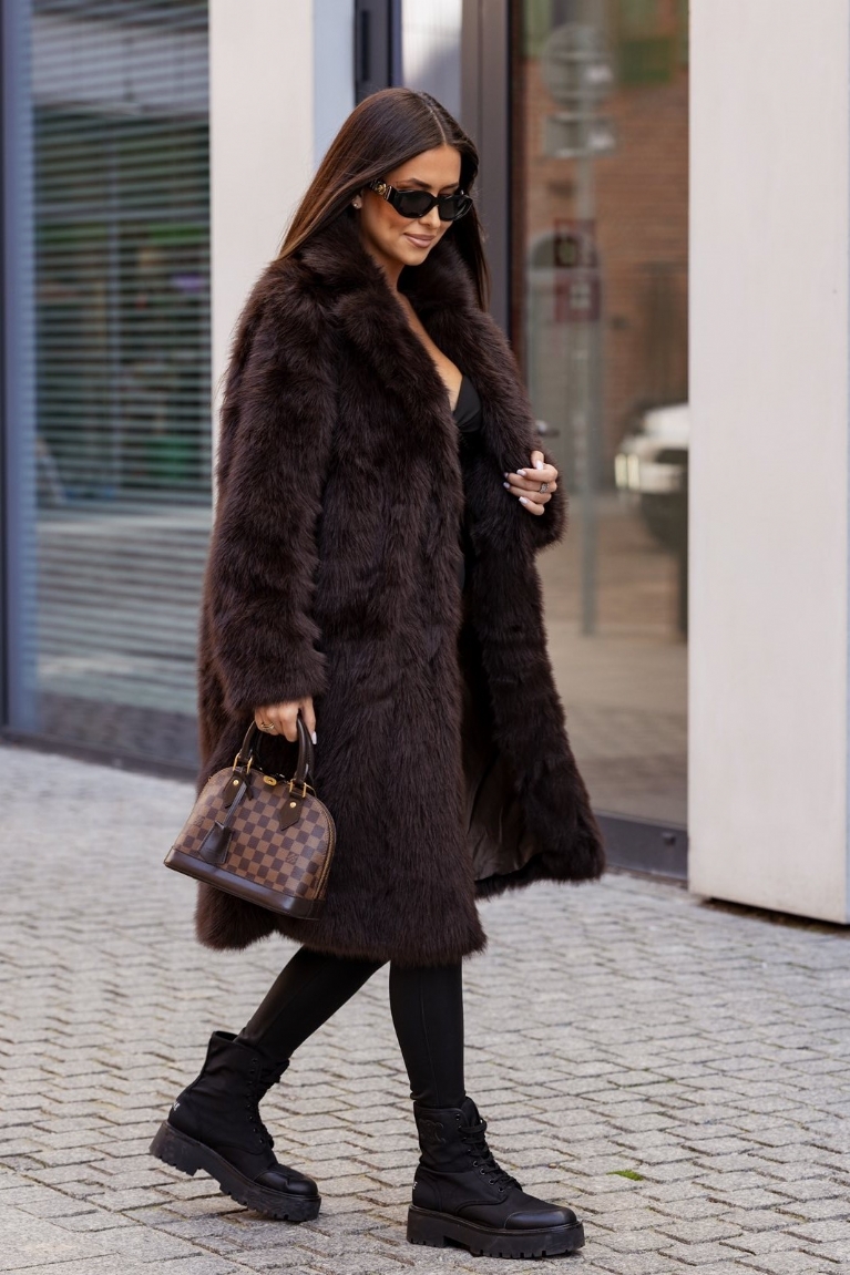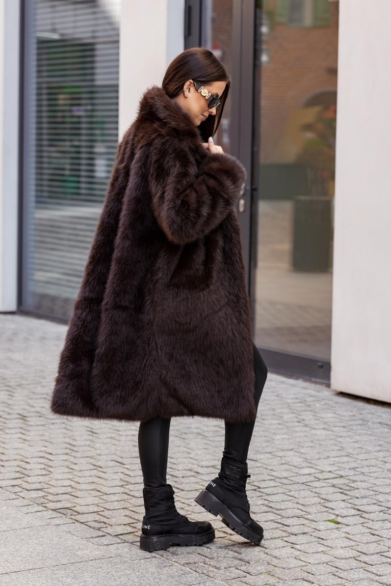 Απογειώστε το στυλ σας με τη μακριά γούνα σε κομψό καφέ χρώμα.