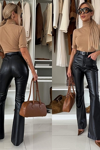 Αναδείξτε το στυλ σας με το δερμάτινο παντελόνι καμπάνα σε μαύρο χρώμα, ιδανικό για formal εμφανίσεις.