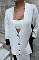 Σετ Πλεκτή Ζακέτα Με Κουμπιά & Φούστα Με Διχρωμία - Λευκό