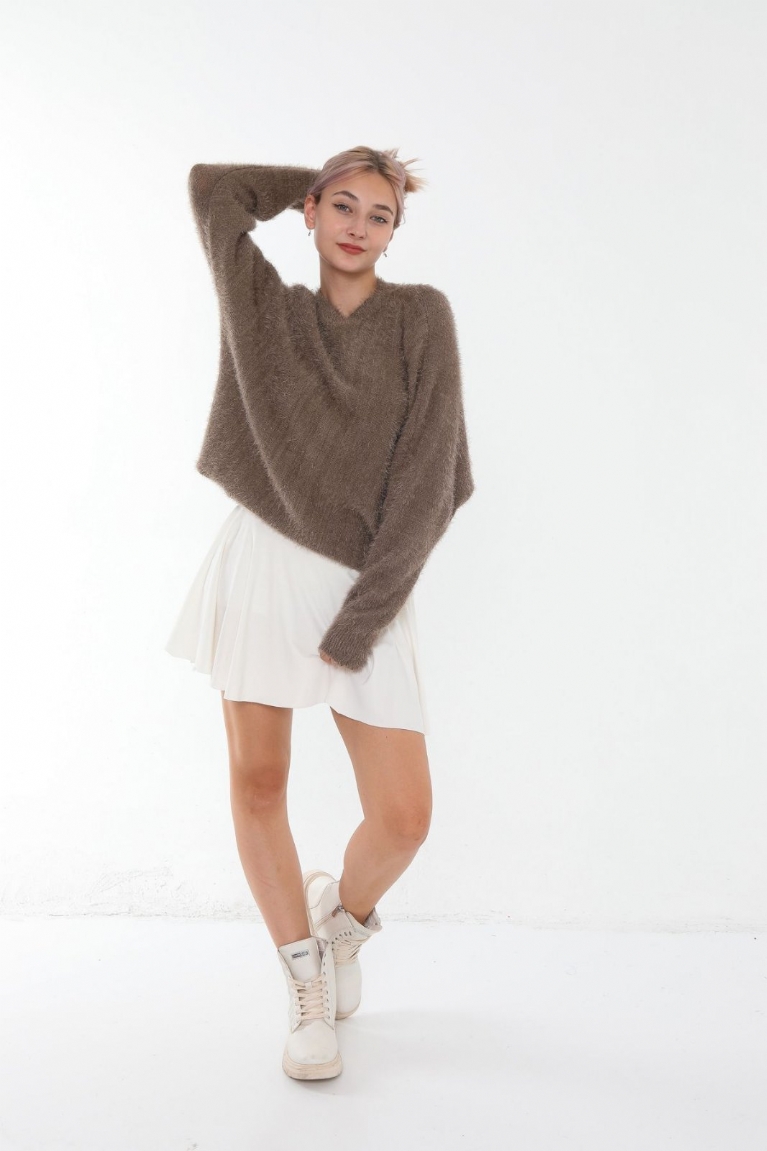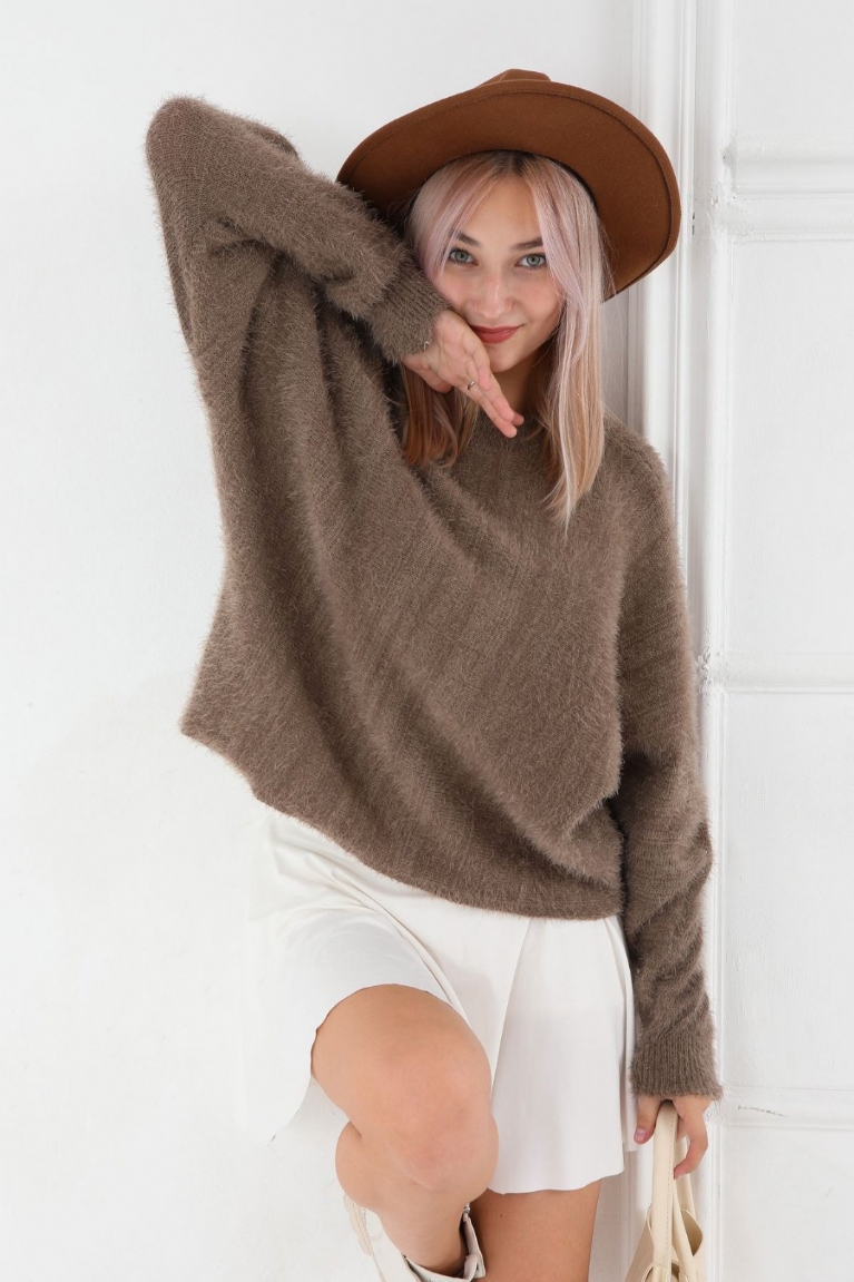 Μπλούζα Fluffy Μακρυμάνικη - Καφέ Πούρου
