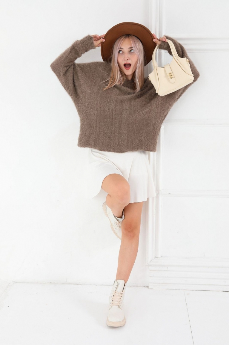 Η μπλούζα Fluffy μακρυμάνικη σε χρώμα καφέ πούρου συνδυάζει κομψότητα και άνεση για μοναδικές εμφανίσεις.