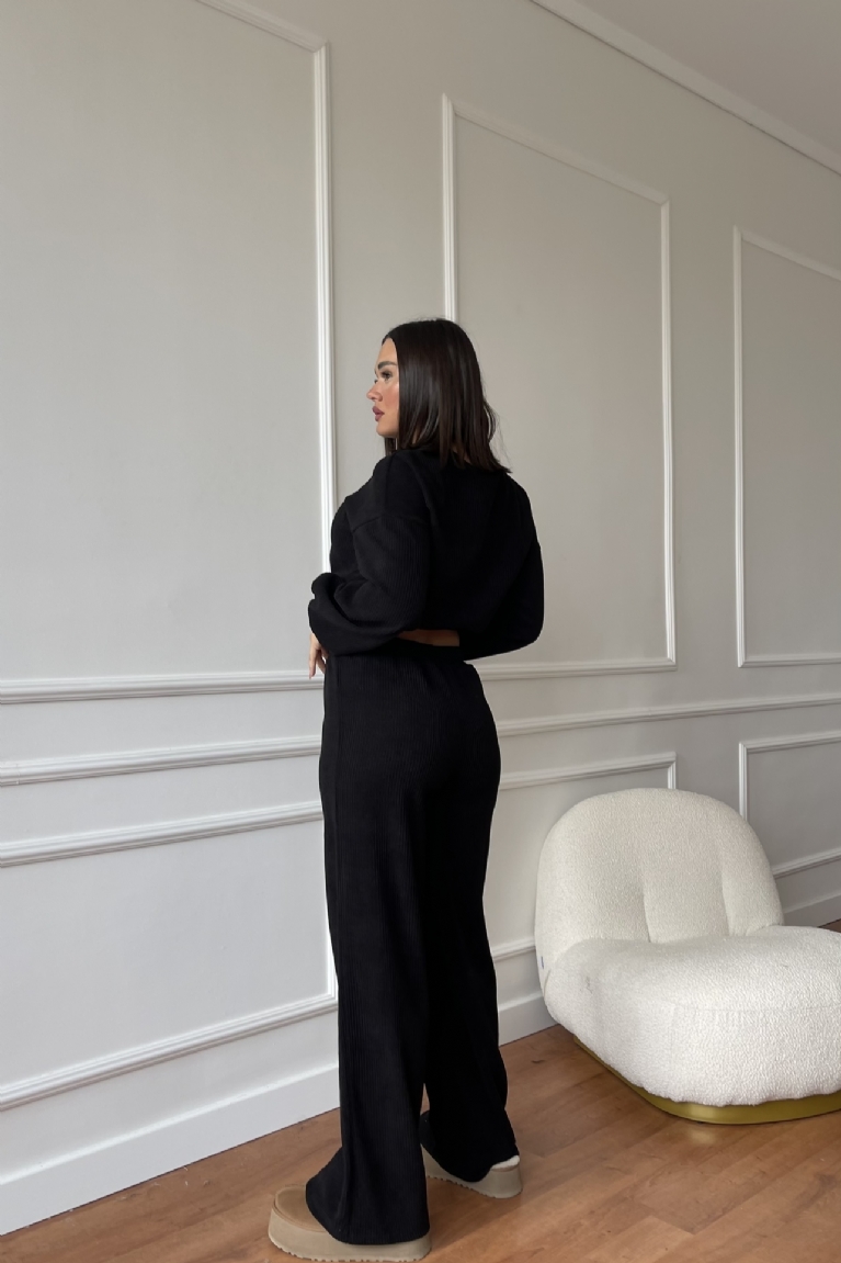 Σετ Κοτλέ Μπλούζα Crop & Παντελόνα - Μαύρο