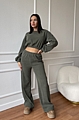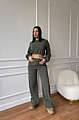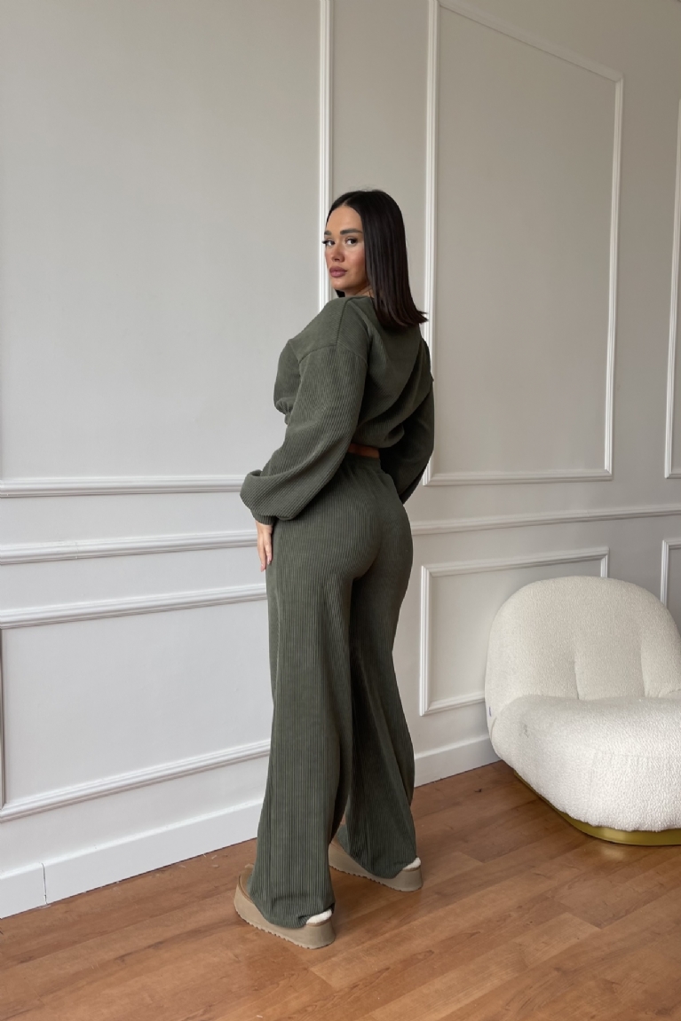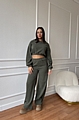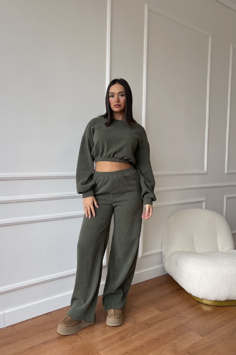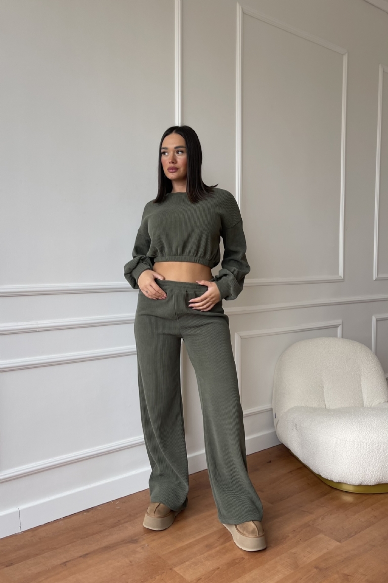 Σετ Κοτλέ Μπλούζα Crop & Παντελόνα - Χακί