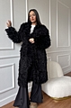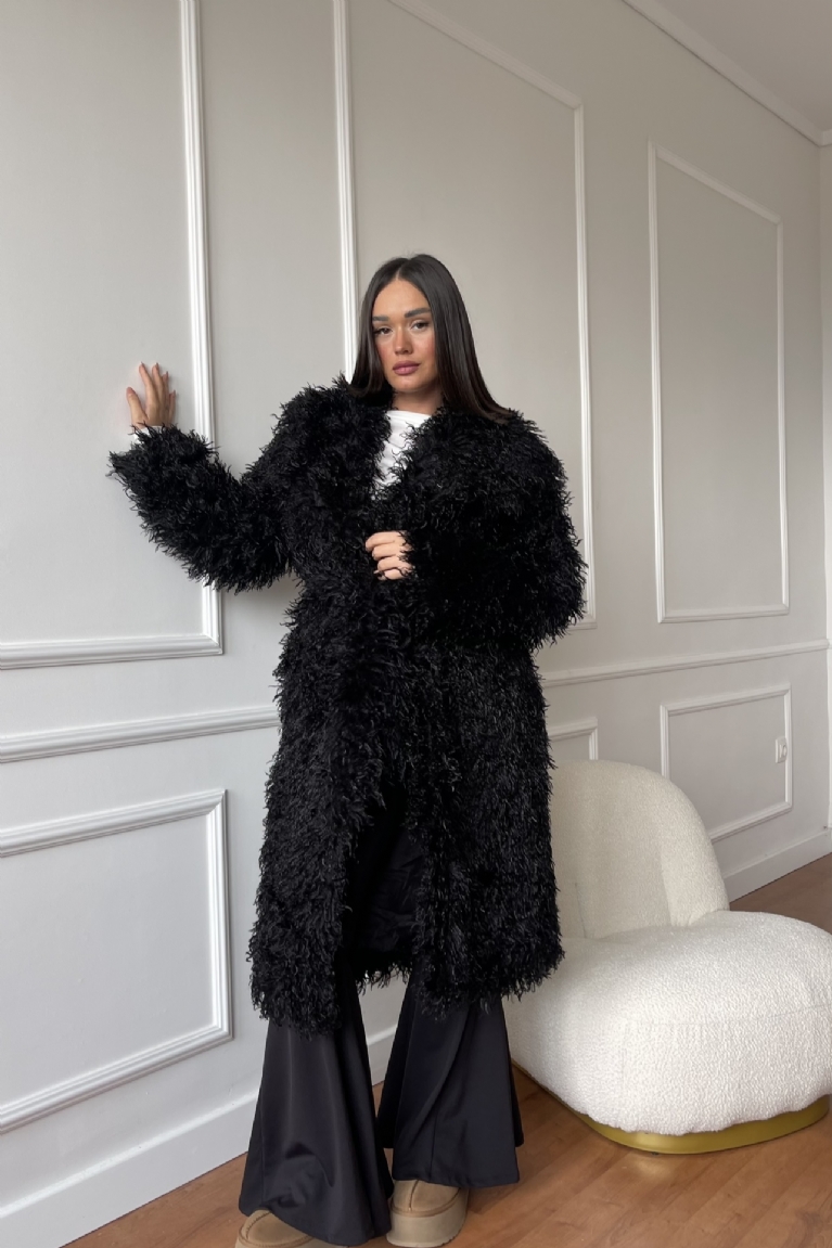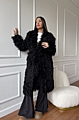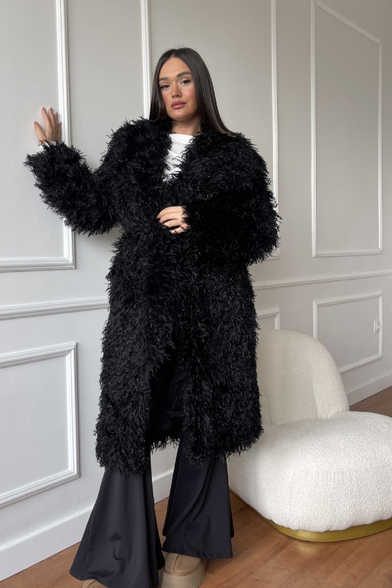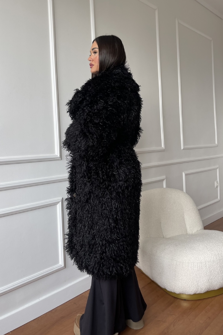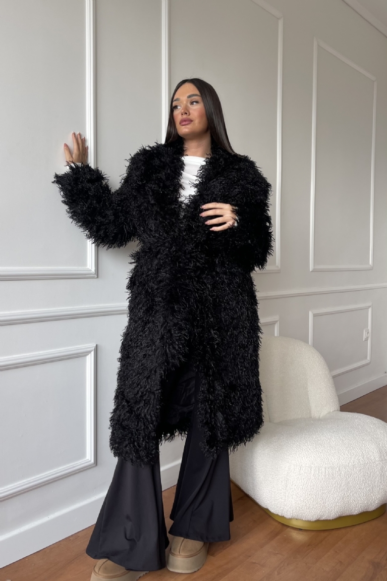 Γούνα Μακρυά Με Ζώνη - Μαύρο