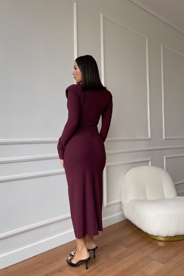 Εντυπωσιάστε σε κάθε σας εμφάνιση με αυτό το midi μακρυμάνικο φόρεμα σε υπέροχη μπορντό απόχρωση.