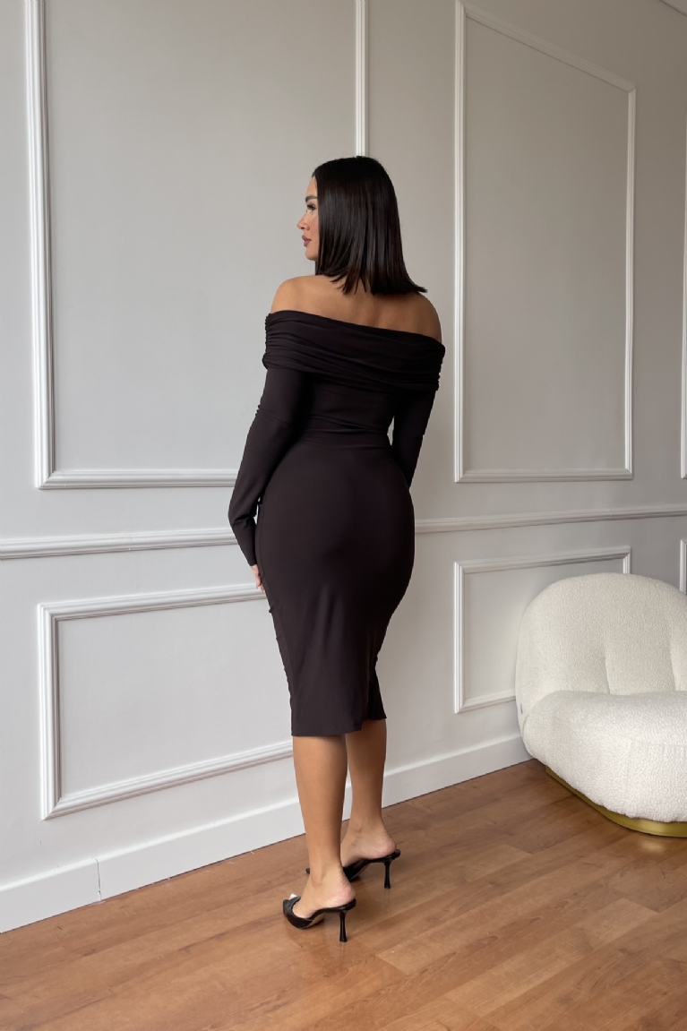 Φόρεμα Midi Έξωμο Με Σκίσιμο - Καφέ