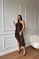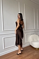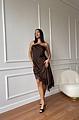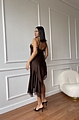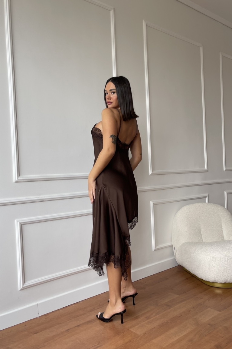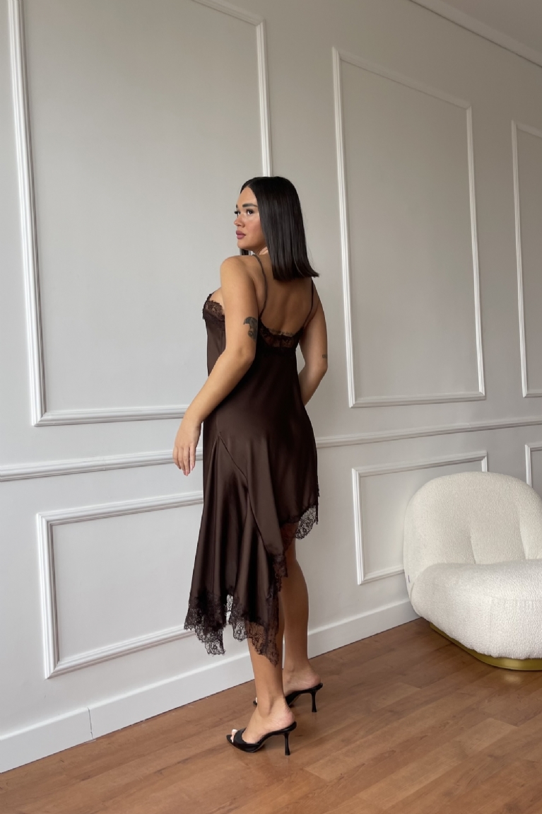 Φόρεμα Σατέν Ασύμμετρο Με Δαντέλα - Καφέ