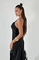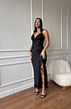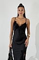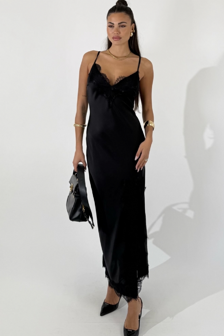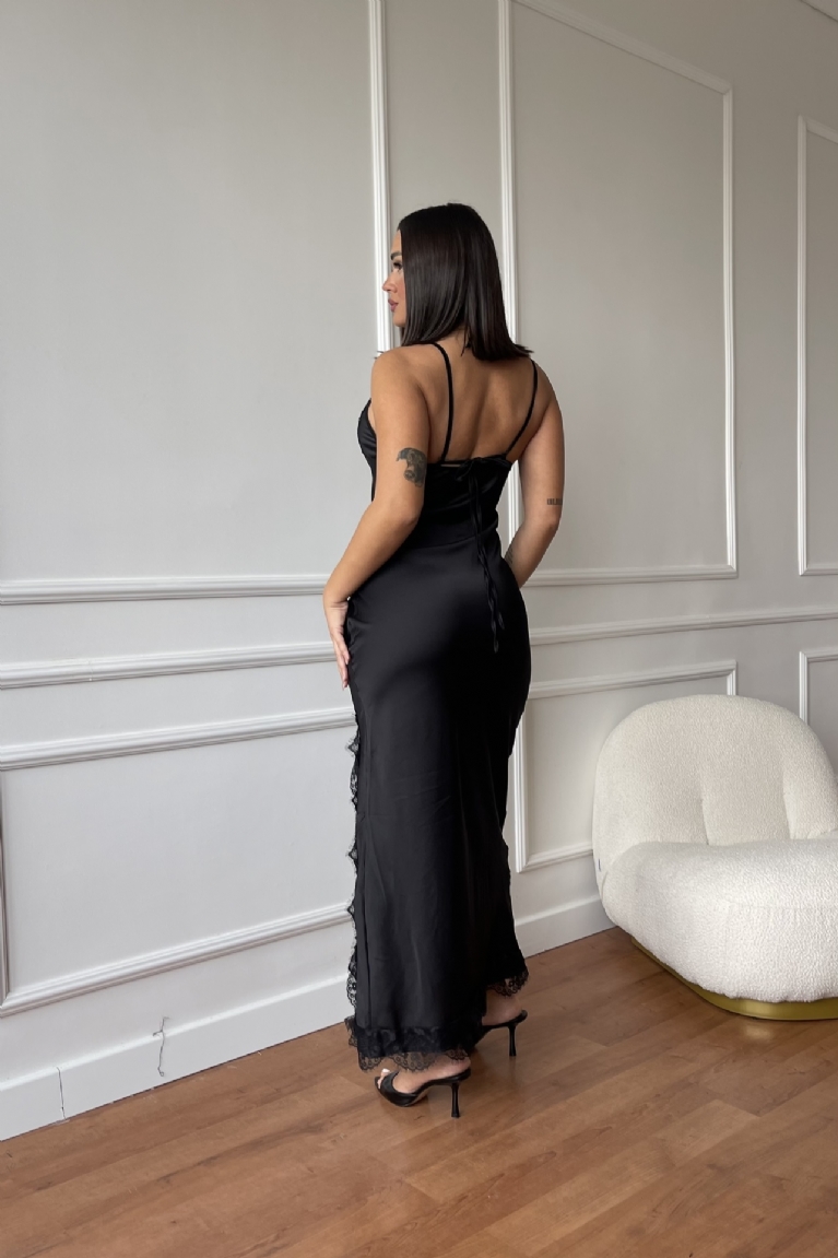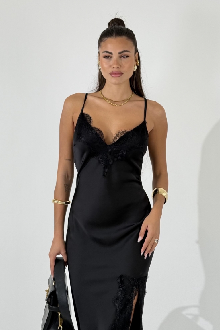 Φόρεμα Μακρύ Τιράντα Με Δαντέλα & Σκίσιμο - Μαύρο