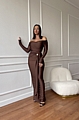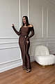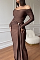 Φόρεμα Maxi Μακρυμάνικο Έξωμο Με Χρυσή Λεπτομέρεια - Καφέ