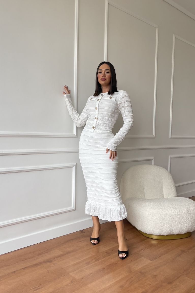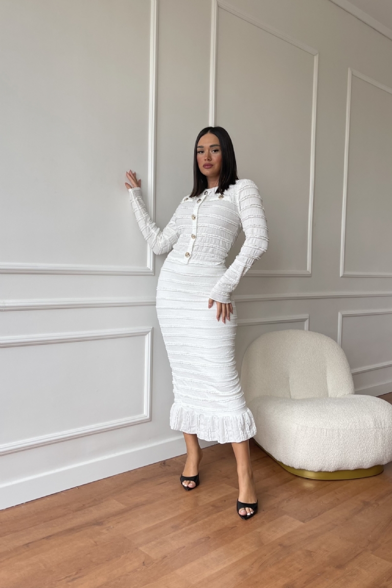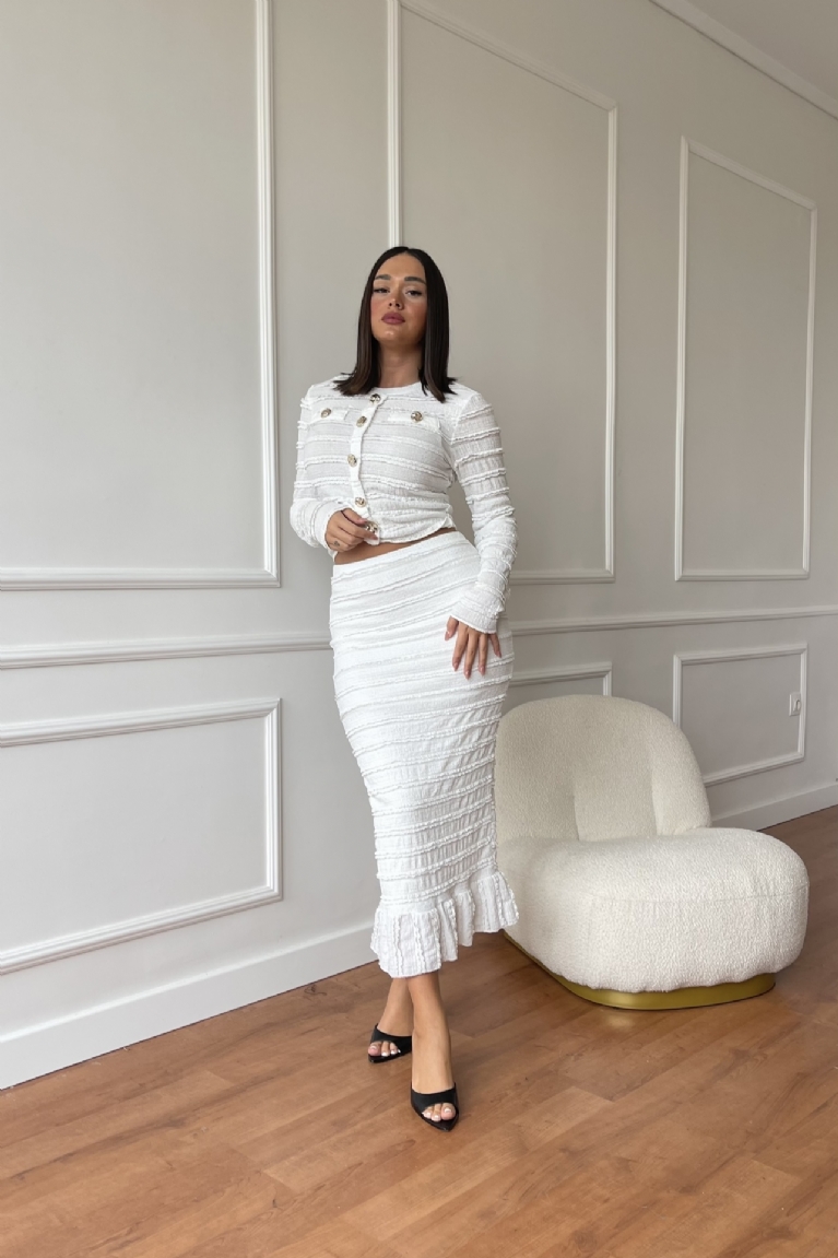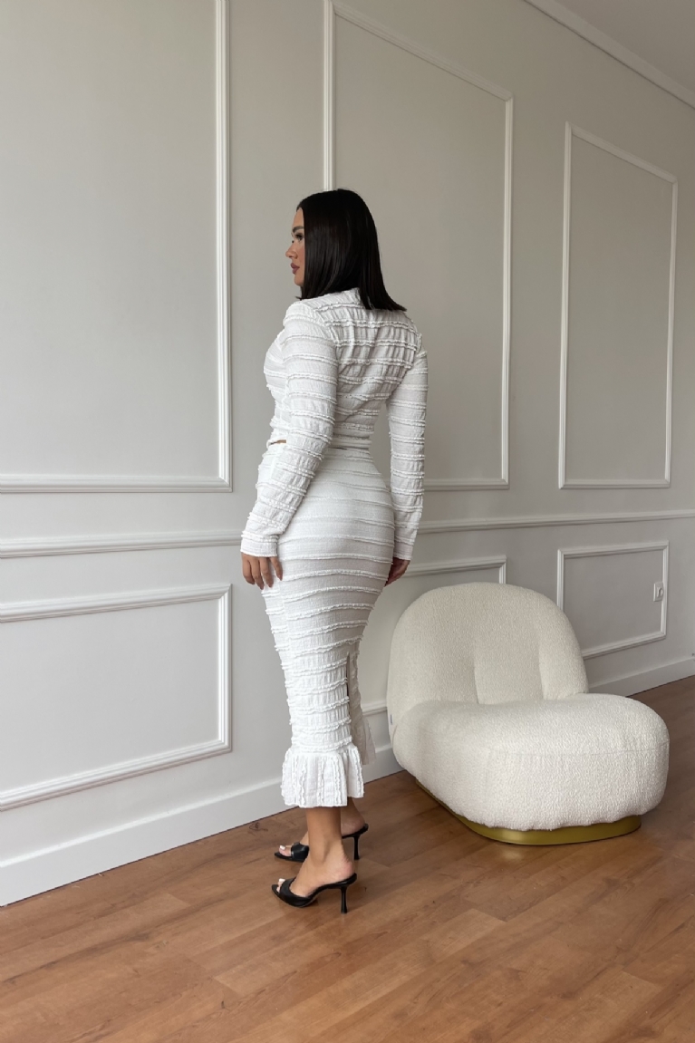 Σετ Πουκάμισο Crop & Φούστα Μακρυά Με Βολάν - Λευκό