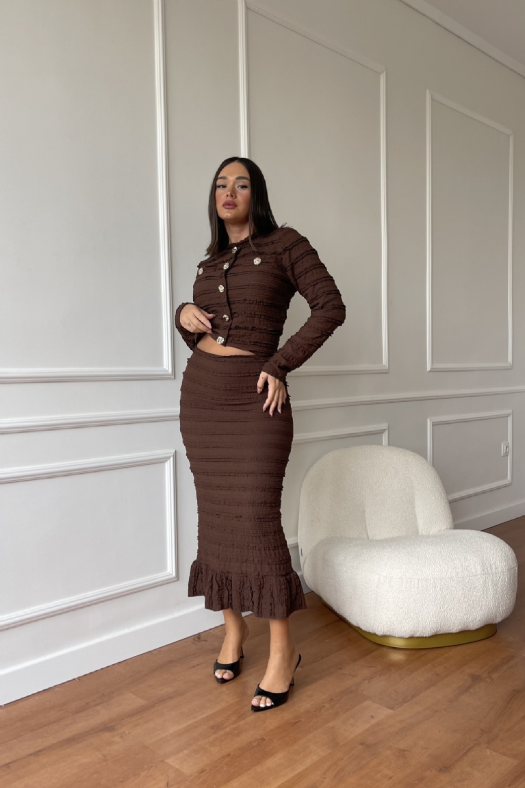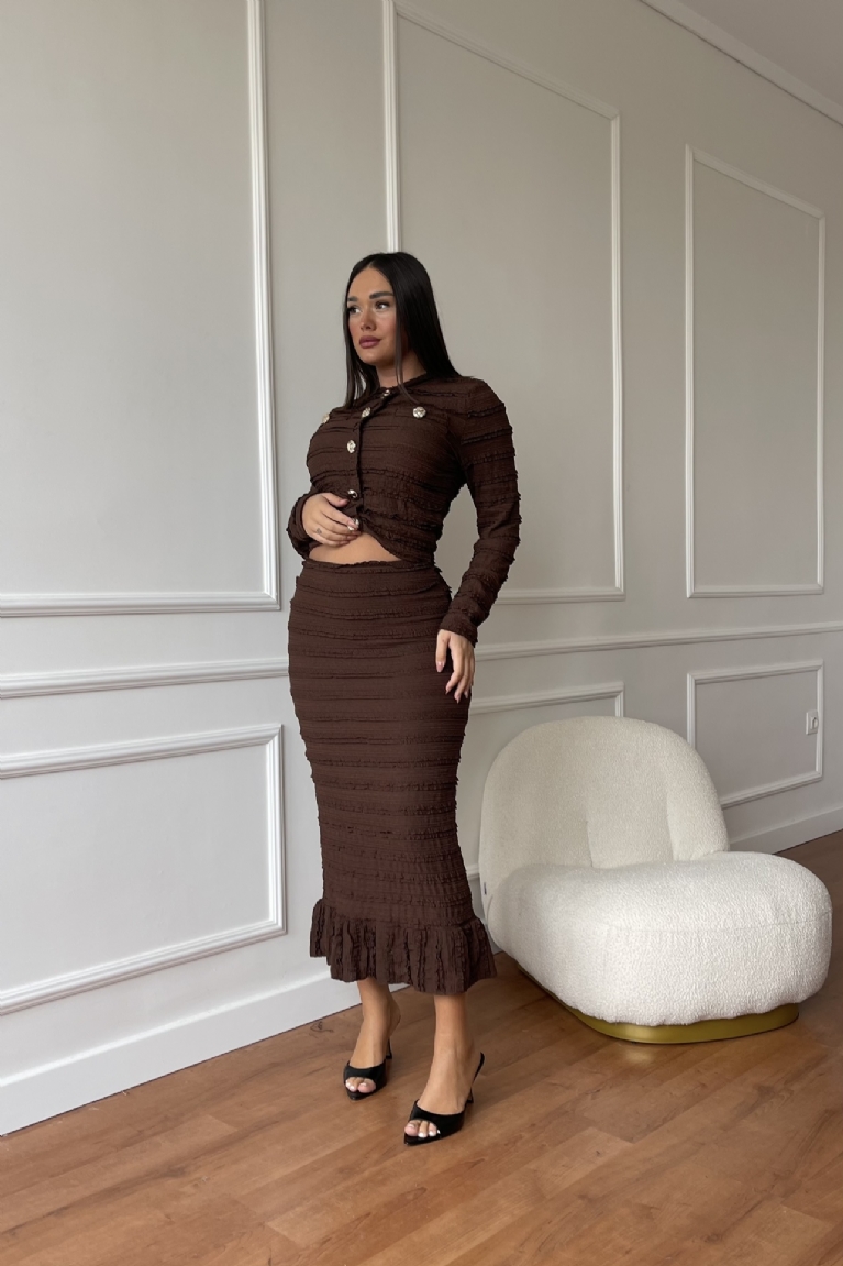 Σετ Πουκάμισο Crop & Φούστα Μακρυά Με Βολάν - Καφέ