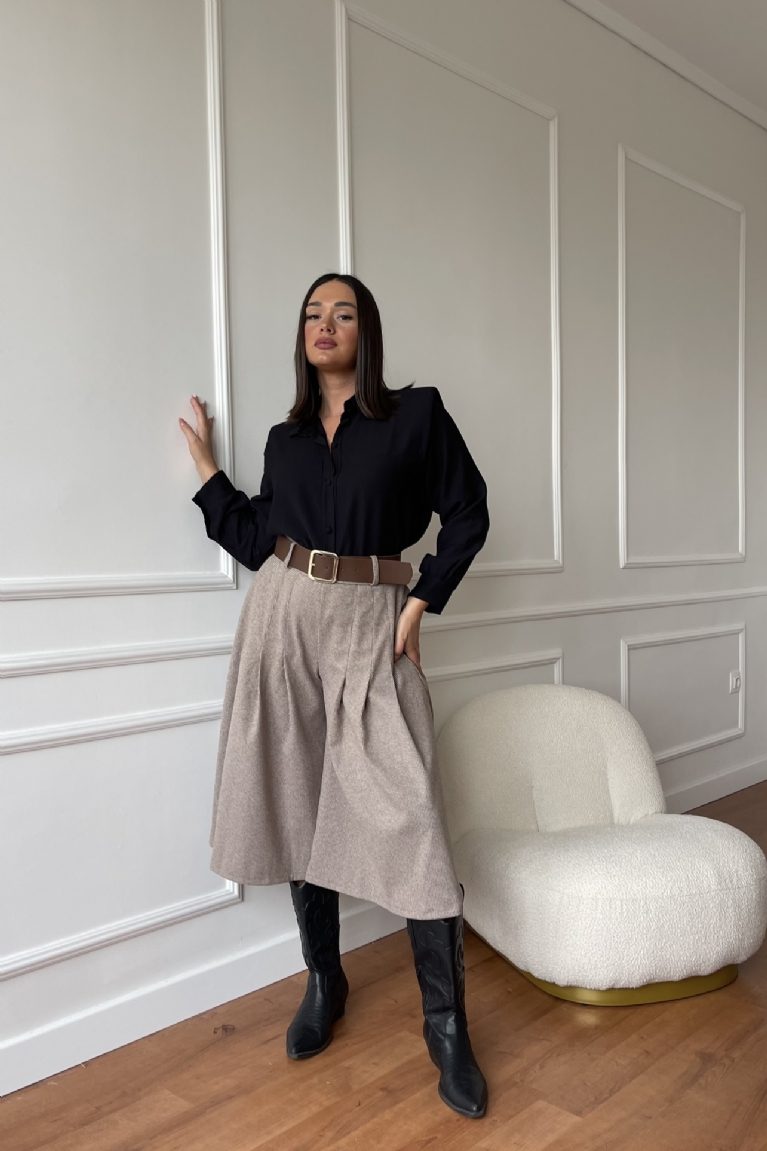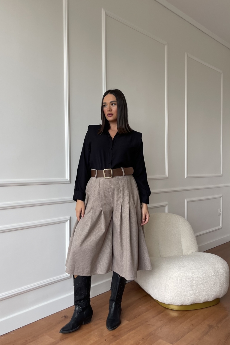 Παντελόνι Ζιπ Κιλότ Με Ζώνη - Μπεζ
