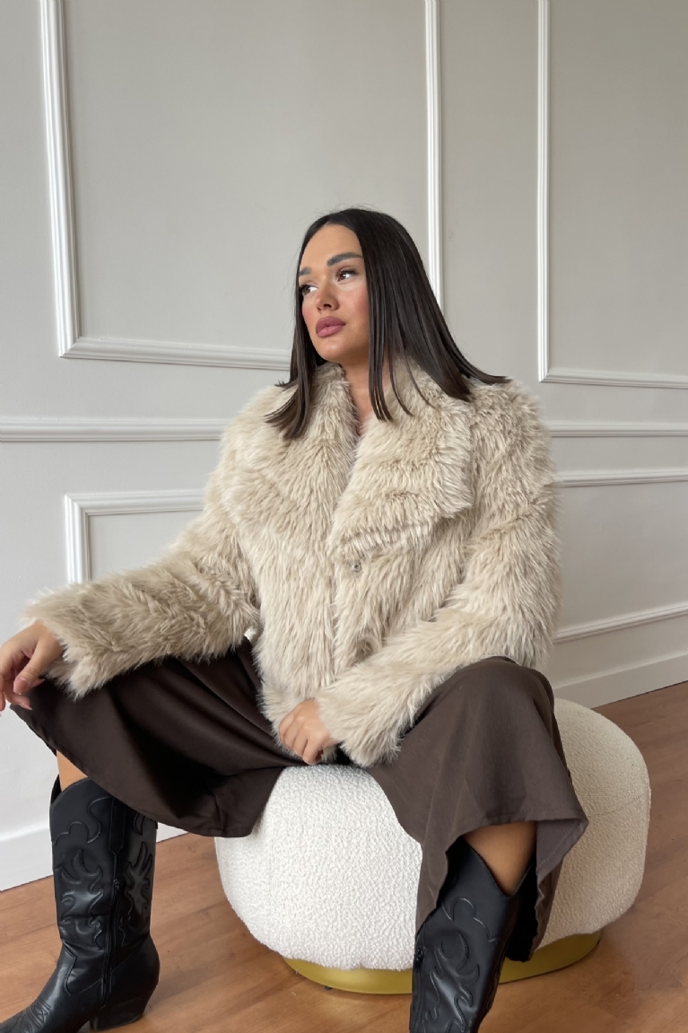 Γούνα Κοντή Με Κουμπιά - Μπεζ