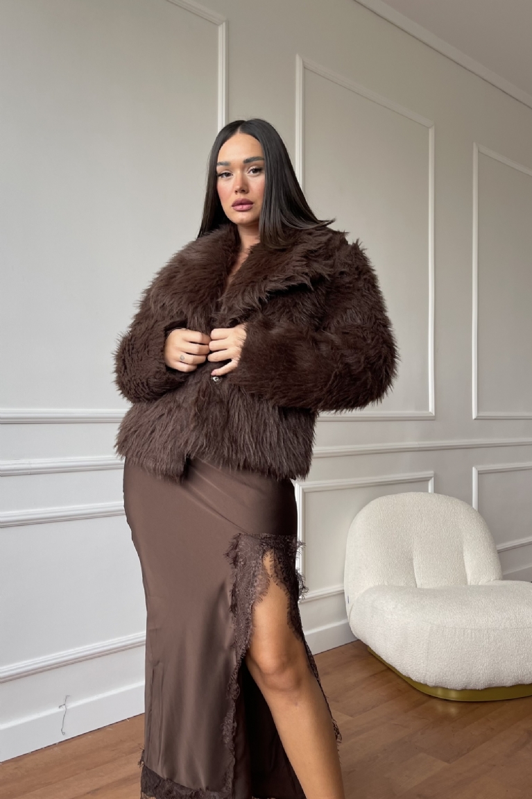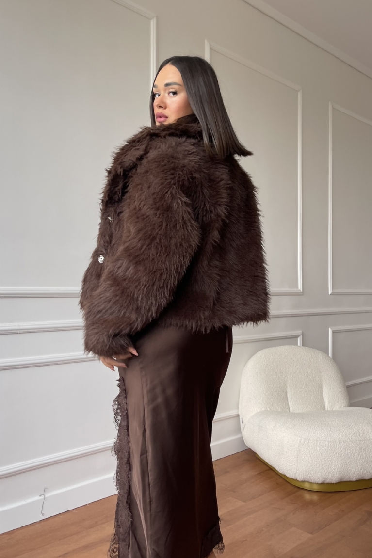 Γούνα Κοντή Με Κουμπιά - Καφέ