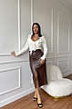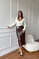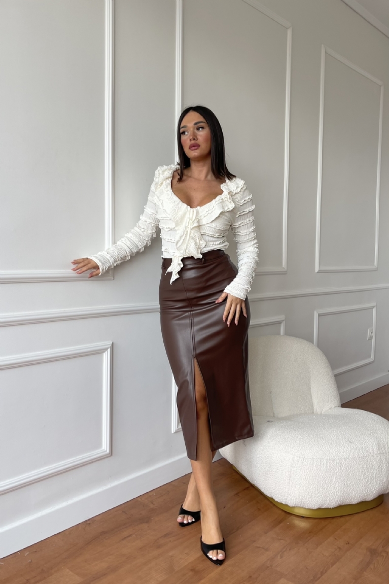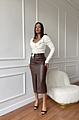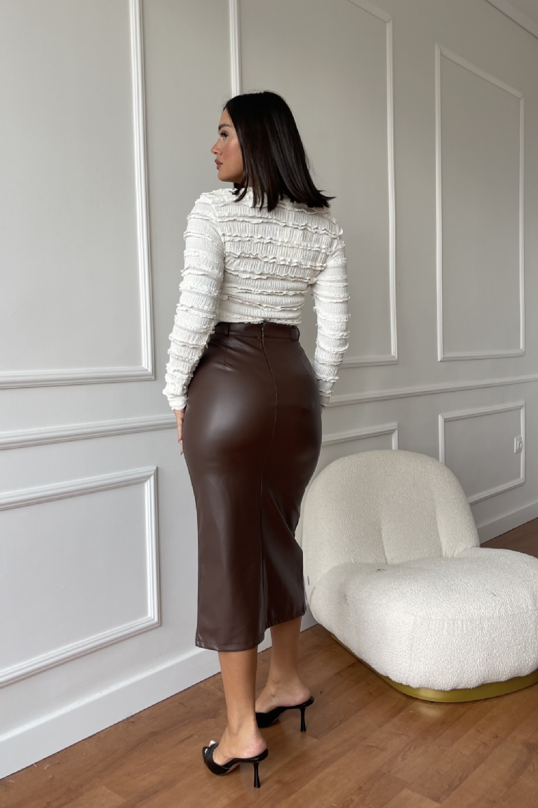 Αναδείξτε το στυλ σας με τη φούστα δερματίνη μίντι σε εντυπωσιακή απόχρωση καφέ.
