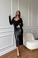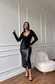 Φούστα Δερματίνη Midi - Μαύρο