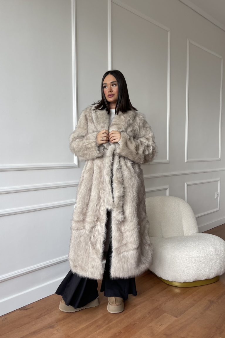 Γούνα Μακρυά Με Ζώνη & Τσέπες - Μπεζ