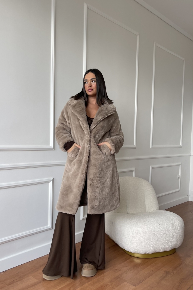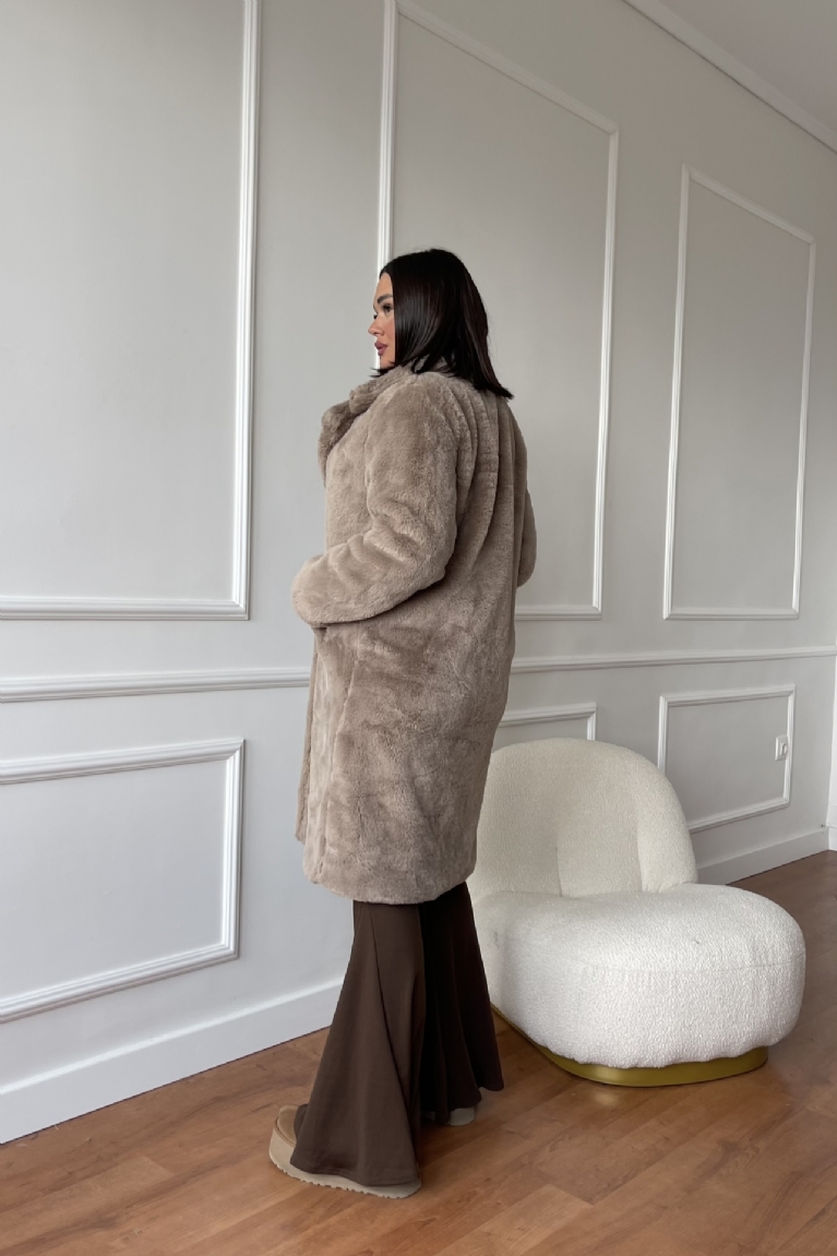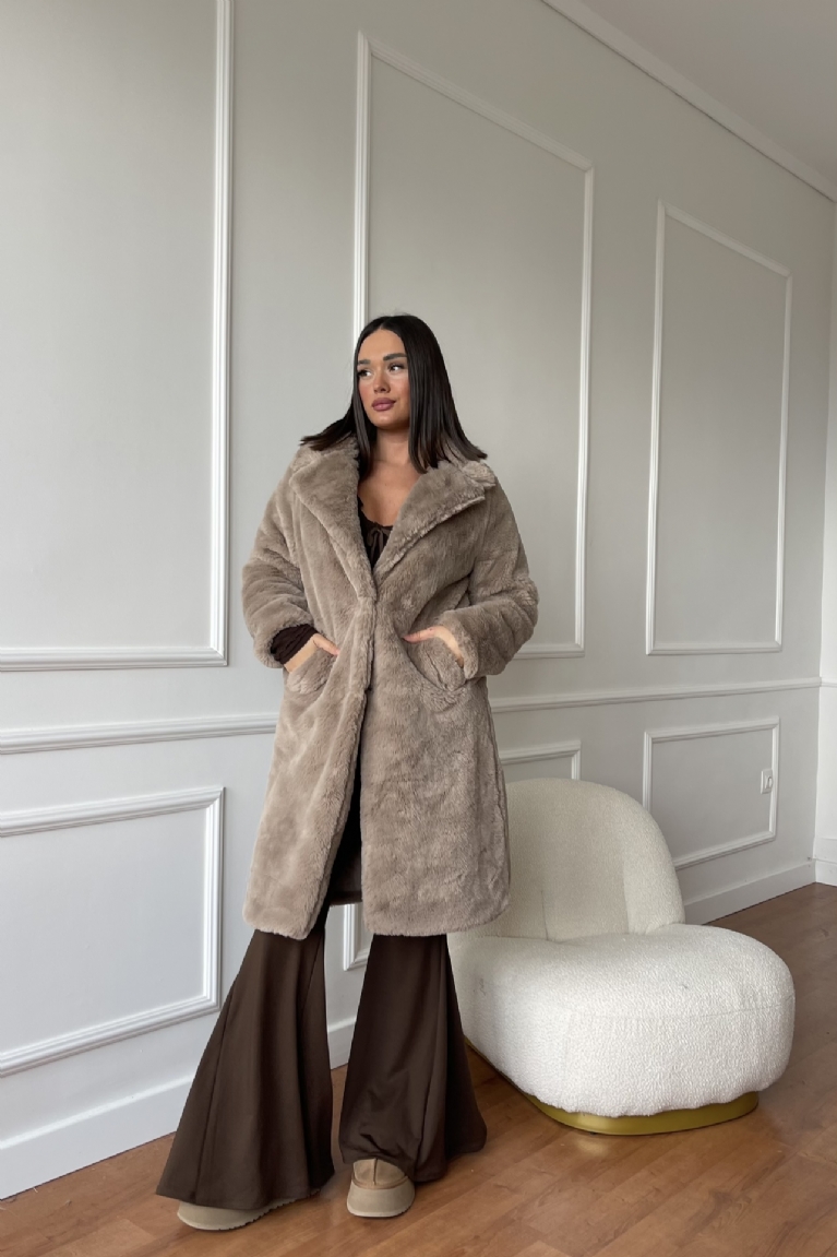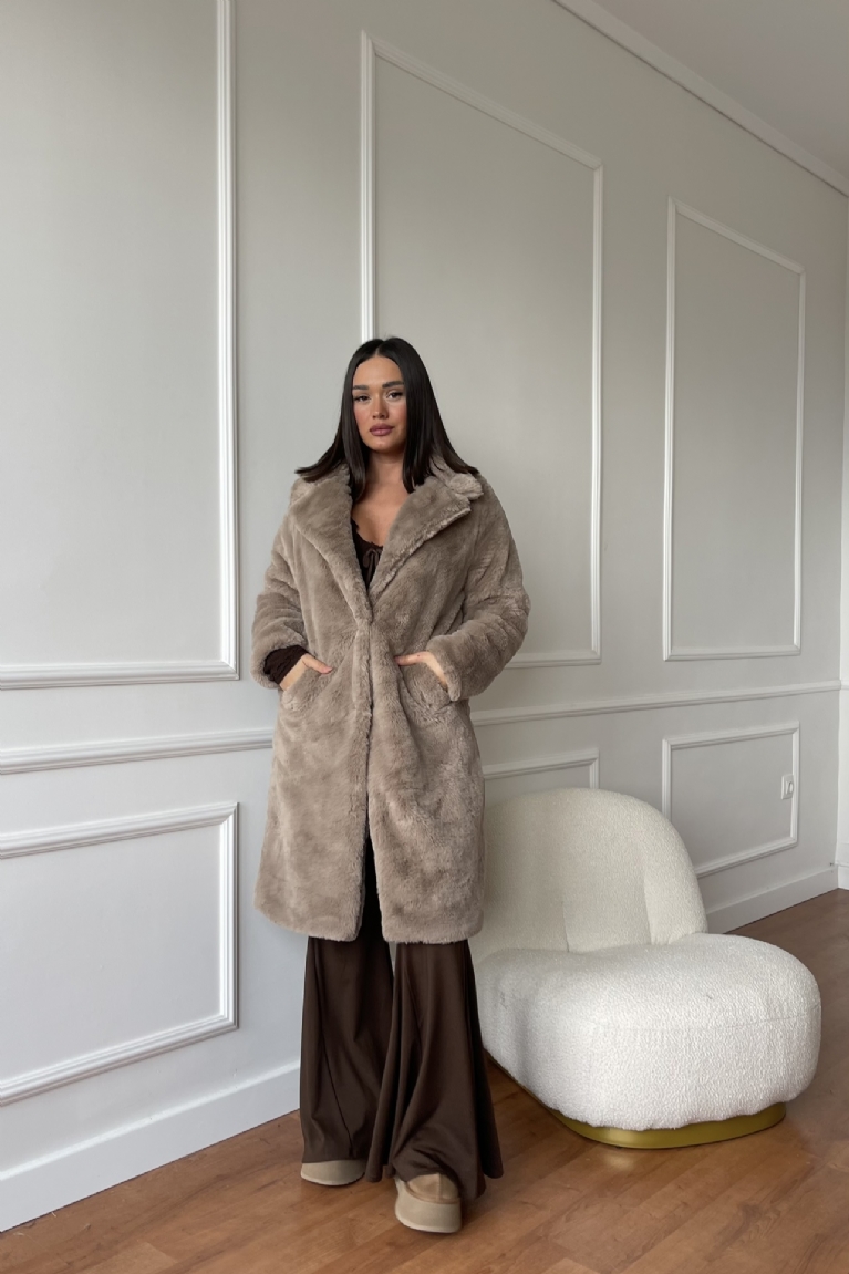 Γούνα Μακρυά Με Κουμπιά & Τσέπες - Καφέ Πούρου