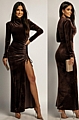 Φόρεμα Midi Μακριμάνικο Βελουτέ - Καφέ