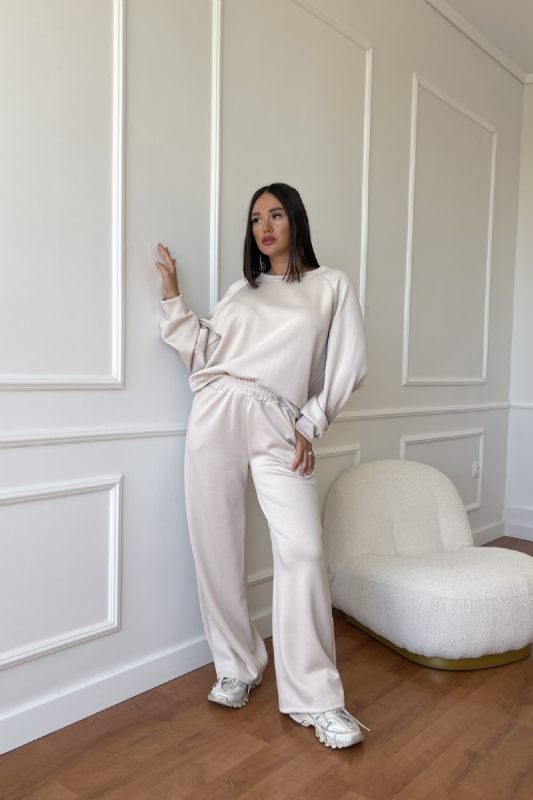 Σετ Φούτερ Μπλούζα & Παντελόνα Με Λάστιχο - Μπεζ