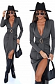 Αναδείξτε το στυλ σας με το μακρυμάνικο midi φόρεμα σε γκρι απόχρωση και εντυπωσιακή χρυσή λεπτομέρεια στη μέση.
