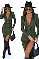 Φόρεμα Μακρυμάνικο Midi Με Χρυσή Λεπτομέρεια - Χακί