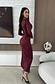 Φόρεμα Midi Mακρυμάνικο Με Χρυσή Λεπτομέρεια - Μπορντό