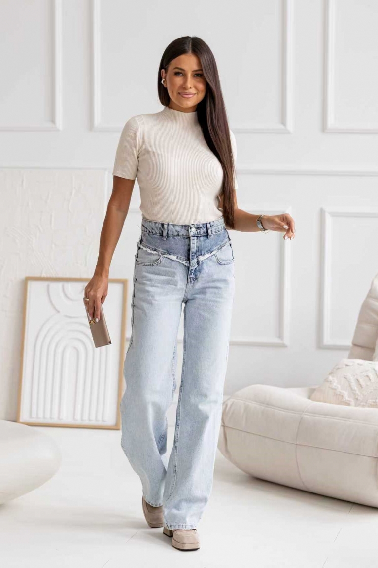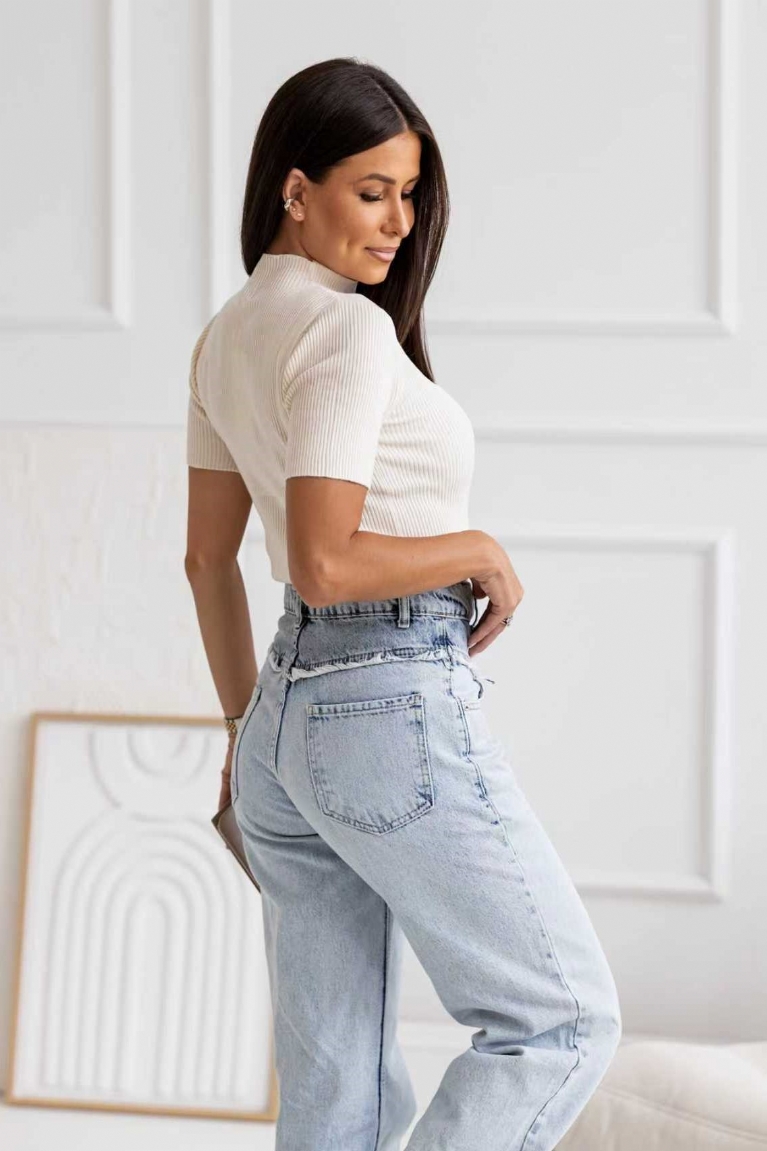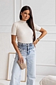 Ανανεώστε το στυλ σας με τη μοντέρνα κοντομάνικη ζιβάγκο μπλούζα σε εκρού απόχρωση.