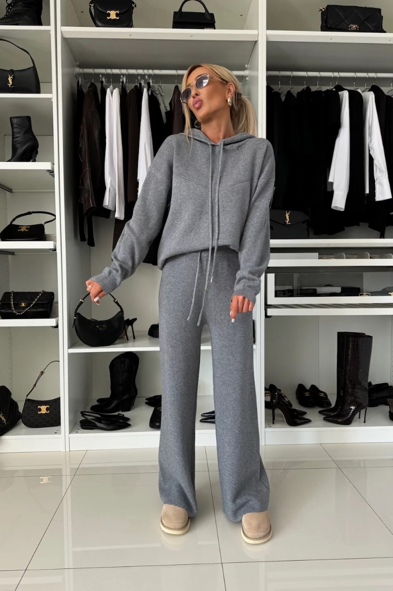 Αναδείξτε το στυλ σας με το σετ μπλούζα με κουκούλα και παντελόνα με κορδόνι σε γκρι απόχρωση.