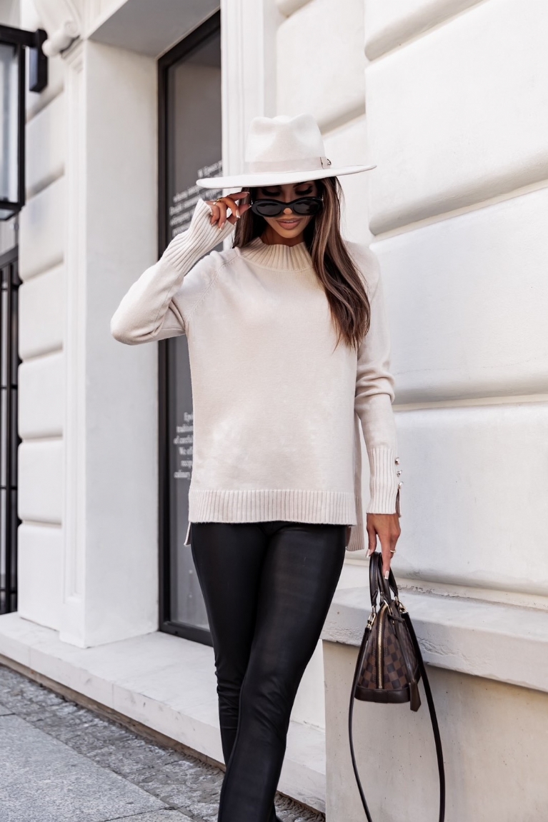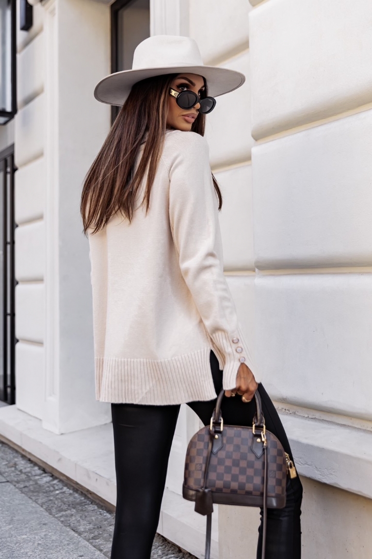 Αναδείξτε το formal στυλ σας με αυτή τη μπεζ πλεκτή μπλούζα, που ξεχωρίζει χάρη στα κομψά κουμπιά στο μανίκι.