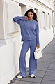 Αναδείξτε το στυλ σας με αυτό το σετ πλεκτής μακρυμάνικης μπλούζας και παντελόνας με λάστιχο σε γαλάζιο χρώμα.