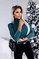Μπλούζα Πλεκτή Ζιβάγκο Με Κουμπιά Στα Μανίκια - Πετρόλ