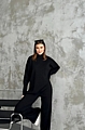 Ανανεώστε το formal στυλ σας με το σετ μπλούζα πλεκτή oversize ζιβάγκο και παντελόνα με κορδόνι σε μαύρο χρώμα.