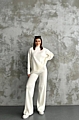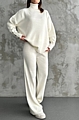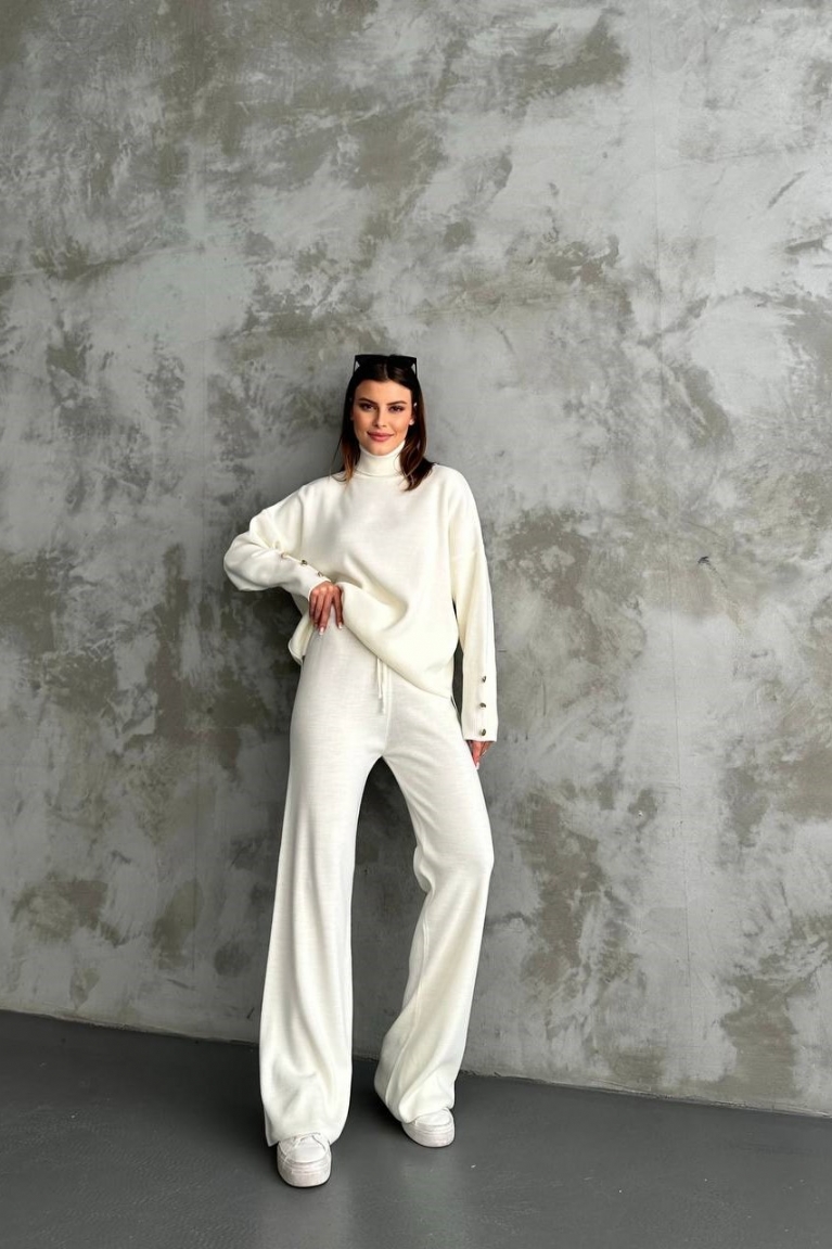 Σετ Μπλούζα Πλεκτή Oversize Ζιβάγκο & Παντελόνα Με Κορδόνι - Λευκό