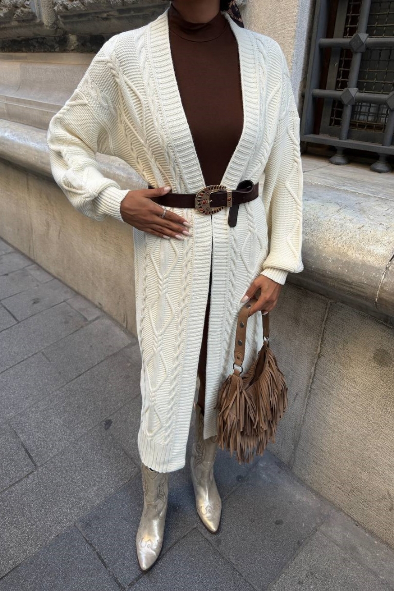 Ζακέτα Πλεκτή Μακρυά - Λευκό