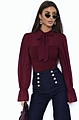 Αναδείξτε τη θηλυκότητά σας με τη μπορντό μακρυμάνικη μπλούζα με διαφάνεια και κομψό δέσιμο στον λαιμό.