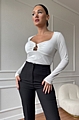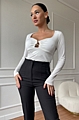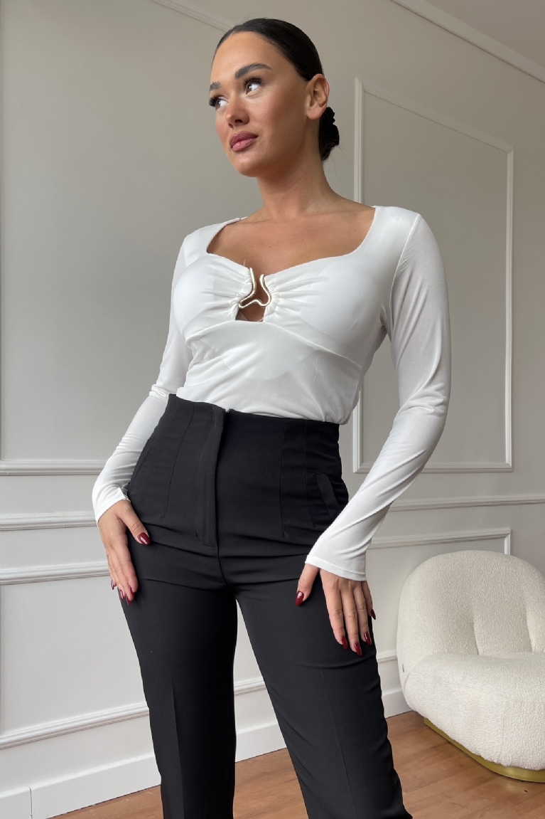 Αναδείξτε το στιλ σας με αυτή τη μακρυμάνικη μπλούζα σε λευκό χρώμα με εντυπωσιακή χρυσή λεπτομέρεια.